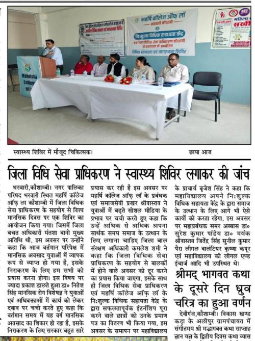 KAUSHAMBI SANDESH MEDIA COVERAGE OF MAHARISHI COLLEGE OF LAW - SUMMER INTERNSHIP CERTIFICATION BY NALSA - 2025